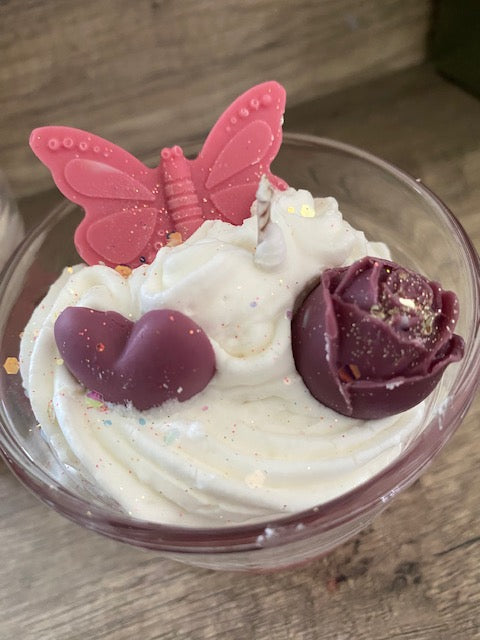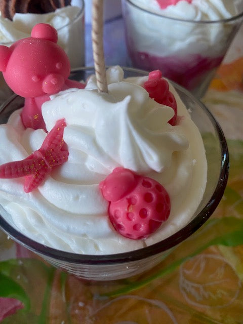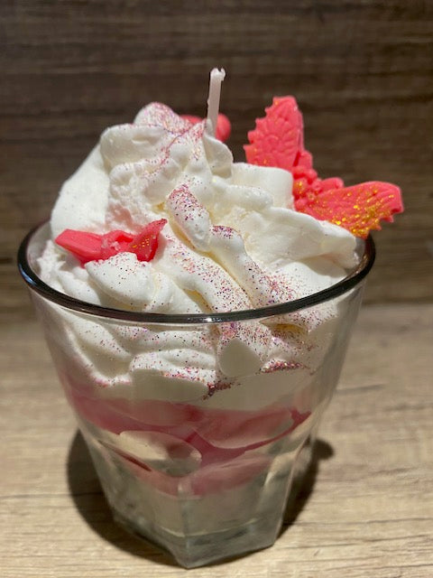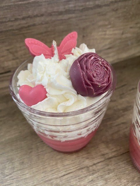 Bougie gourmande et florale, avec une senteur délicate et des nuances de couleur dans les tons rose.