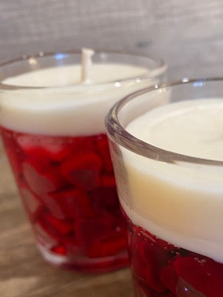 Bougies en gel de paraffine cristal et en cire de colza, avec différentes senteurs et coloris au choix.