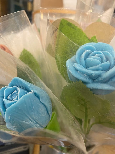 Fleur de cire sur tige, disponible en plusieurs coloris et divers parfums.