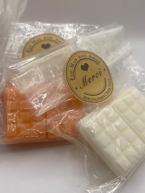 Mini tablettes aux couleurs variées et aux parfums divers, fabriquées en cire soja. A l'unité